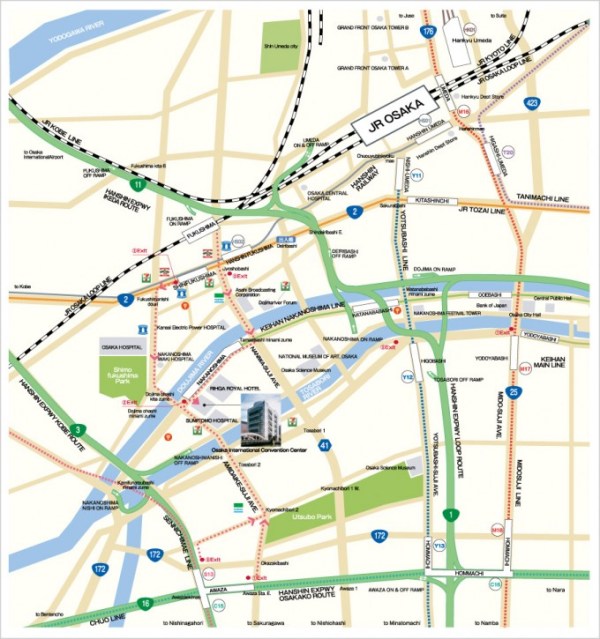The closest train station to the Centre is the Nakanoshima Keihan Line station (use Exit No. 2 from the platform), with the next closest being the Fukushima JR Loop Line station (a 15-minute walk to the venue). Several city buses run directly from the JR Osaka train station as well.