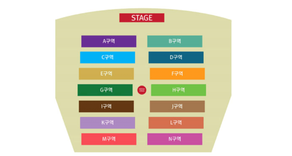 Ticket price: 35,000 won per seat; approximately 1,500 seats will be available (subject to change). There are various levels of seating that will be chosen by lottery after ticket sales open on 27 September. The seating layout is are below: