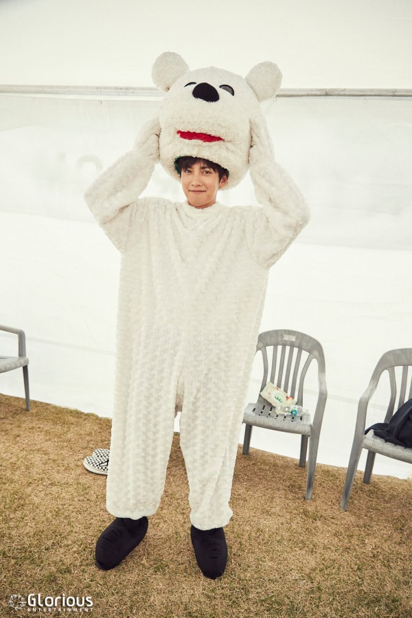 On 15 October at 6:00pm, the Ji Chang Wook 3D Fan Meeting was held on the lawn at the Seoul Sangam Nanji Hangang Park in Mapo-gu, with the Han River in the background visible from the audience. 2,000 attendees were treated to a 4-hour performance, starting off with footage of Wook singing “Insomnia” and “Run To The Sky” filmed during his earlier Asia Tour stops. Another montage was shown from earlier in the day showing Wook strolling (or is it trolling?) the grounds dressed up in a polar bear suit, and then assisting with the setup of the picnic area. Several large photos of Wook as his Kim Jae-ha character in “The K2” were set up on the grounds for viewing by the attendees.