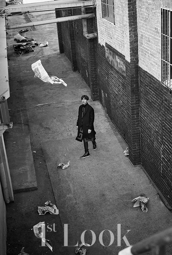 Ji Chang Wook leaned against the roof railing of an abandoned factory where the cold wind blew coldly enough that his mouth froze and could not speak properly. Barely getting into position, a gust of dusty wind disrupted his vision before he could turn his face toward the camera. The photo shoot continued for several hours with him using hot packs that barely soothed his frozen face; the photo shoot of actor Ji Chang Wook was a tough one indeed. Just up till the day before, the weather in the southern province was mild enough for spring flowers to bloom when they are not supposed to, but the sudden cold wave felt twice as bad today. And in the middle of that difficult scene, he stood there shining with a face that was stronger than anyone else, and posed with expressions that were more interesting than anyone else.