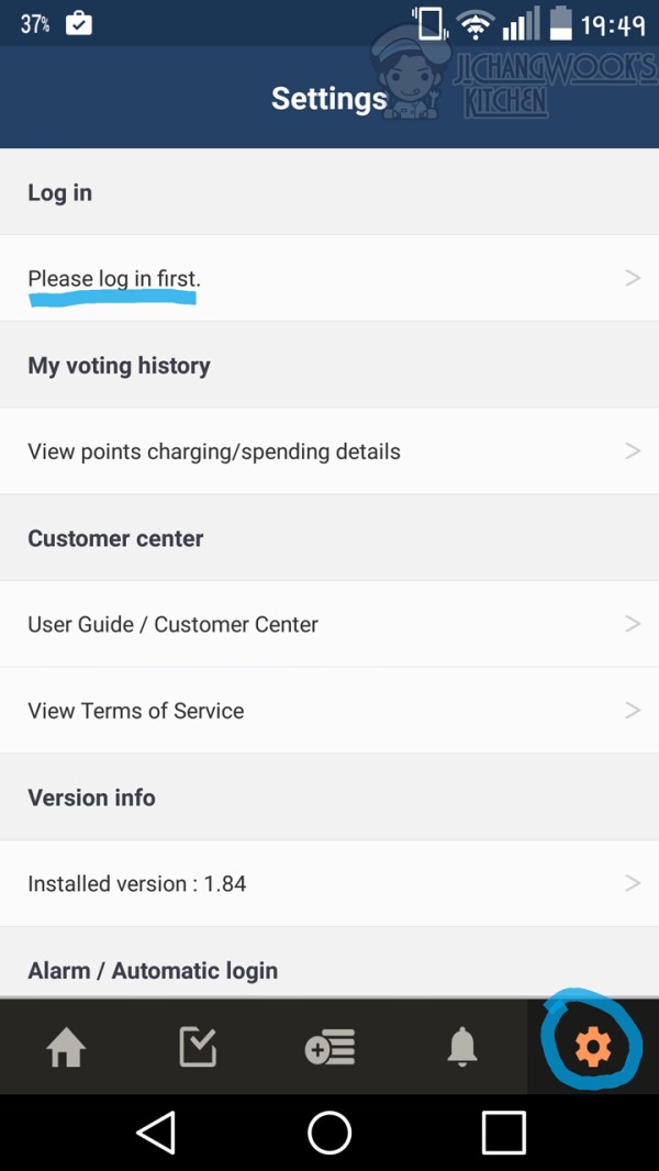 Step 2: Open the app after it is installed and go to Settings, which is the bottom right button on the menu below. Log in. See screenshot below.