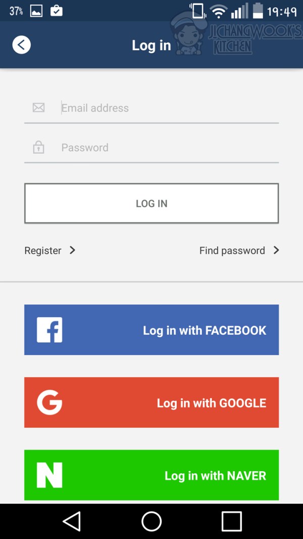 Step 3: Choose your preferred method of signing in. Register a new account or sign in using your existing Facebook, Gmail or Naver account.