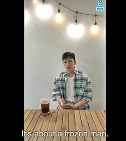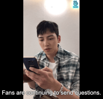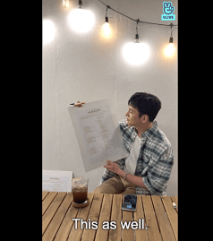 Sitting at a plain table with his ubiquitous iced coffee at his side, Wook looked a little uncomfortable and admitted as much since it’s been over two years since his last full-length VLive. Wook really wanted to have his first fan meeting after his discharge at a larger venue (than the iMarket Hall where it is currently set), but ended up apologizing for the Invitation show turning out to be a ticketing nightmare.