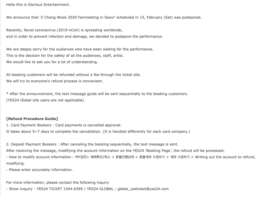 For those of you who were expecting the fan meeting, we’ll come back with a better preparation when it is safe to meet you again. Be careful with your health and see you again. 🙂